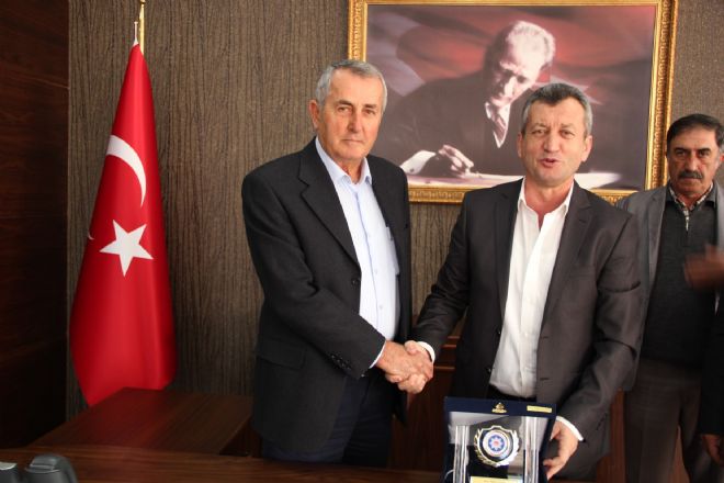 Yeni belediye hizmet binasının hayırlı olmasını dilemek üzere yönetim kurulu üyelerinin de katılımıyla Belediye Başkanı Tahir Şahin'i makamında ziyaret eden Çiftçi Malları Koruma Başkanı Metin Şenol, kendilerine verdiği destek neden