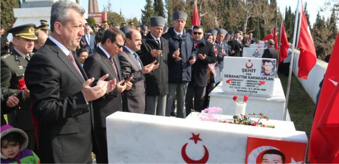 Ardından şehit kabirleri ziyaret edilerek karanfil bırakıldı. İlçe Müftüsü İsa Solmaz’ın okuduğu dua ile buradaki törene son verildi.