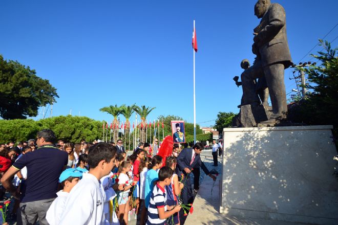 Program, Cumhuriyet Meydanı’ndaki Atatürk Anıtı’na Foça Belediye Başkanlığı çelengi sunulması ile başladı. Törene, Foça Belediye Başkanı Gökhan Demirağ, belediye meclis üyeleri, siyasi partilerin temsilcileri, sivil toplum örgütleri üyeleri, gaziler, Kuvayi Milliye Dernekleri üyeleri ve vatandaşlar katıldı. Ulu Önderimiz Mustafa Kemal Atatürk ve Aziz Şehitlerimizin manevi huzurunda bir dakikalık saygı duruşunu müteakiben, Şanlı Bayrağımız İstiklal Marşımız eşliğinde göndere çekildi.