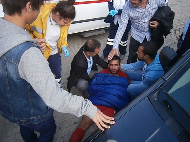 Bir süre bir aracın dibinde kendimiz götürelim-götürmeyelim tartışmaları arasında bekletildi. 6-7 dakika gibi bir zaman sonra ambulans geldi. 112 Acil ekibi oyuncuya önce yerde gerekli müdahaleyi yaptı. Sonrasında Foça Devlet Hastanesi’ne götürdü.