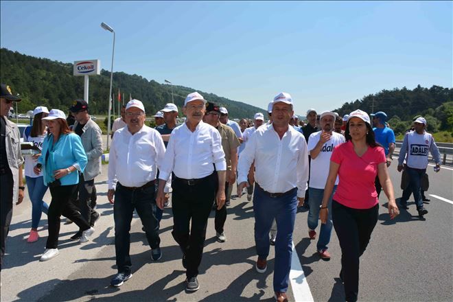 Herkes için adaletin peşinde olduklarını söyleyen Başkan Tahir Şahin; ?Bu ülkenin eşit yurttaşı olduğumuzu hatırlatmak için, toplumun her kesiminin özgürlüğü için yollardayız. Biz, herkes için adalet istiyoruz. 80 milyon, bir arada ve huzur içinde yaşasın istiyoruz. 15 Haziran´da sayın Genel Başkanımızın yürüyüş talimatıyla çıktığımız bu yolda kararlılıkla ilerliyoruz. Bilinçli bir şekilde, provokasyonlara gelmeden, hak, hukuk ve adalet diyerek örgütlü bir şekilde devam eden yürüyüşümüze destek veren yurttaşlarımızı yürekten kutluyorum. Hep birlikte bu güzel ülkemizde yanlış giden işlere ?dur´ demenin mutluluğunu yaşıyoruz. Umarım bu örgütlü mücadelemiz sonuç verir ve bu güzel vatanımızda bir daha ?adalet´ için hiç kimse yollara düşmek zorunda kalmaz. Yaşasın adalet?diye konuştu.