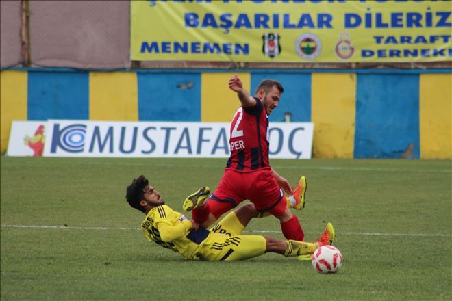 74´üncü dakikada Menemen atağında Haluk´un ortasıyla penaltı noktasında buluşan Mert Hakan uygun durumda topu auta atınca maç 1-1 sona erdi.