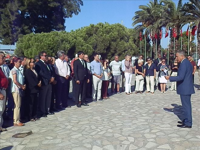 Saat 09.30´da Cumhuriyet Meydanı´nda ki Atatürk Anıtı´nda yapılan çelenk koyma törenine Foça Kaymakamı Niyazi Ulugölge, Garnizon Komutanı Amfibi Görev Grup Komutanı Tümamiral Aydın Şirin, Belediye Başkanı Gökhan Demirağ, belediye meclis üyeleri, siyasi partilerin ilçe başkanları ve temsilcileri, bazı STK temsilcileri, garnizonda görevli askerler ile vatandaşlar katıldı.