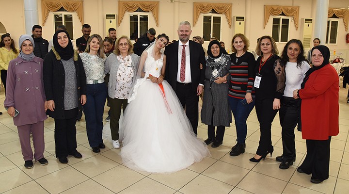 Menemen’de yaşayan özel gereksinimli genç kızın düğün hayali gerçek oldu. 22 yaşındaki Rabia Aktaş için Menemen Belediyesi, Menemen Gönüllü Sosyal Yardımlaşma ve Dayanışma Derneği, Menemen İlçe Emniyet Müdürlüğü ve Türk Kızılayı Menemen Şubesi işbirliğiyle gerçeği aratmayan temsili düğün gerçekleştirildi. Genç kızla dans edip halaylara eşlik eden Menemen Belediye Başkan Vekili Aydın Pehlivan “Hep birlikte bizlere yakışanı yaptık. İçtenlikle söyleyeyim hayatımın en özel, en anlamlı nikâhına katıldım. Çünkü kardeşimiz Rabia Aktaş’ın en mutlu anlarına şahitlik ettim. Emeği geçen herkese çok teşekkür ediyorum. İyi ki varsınız” dedi.