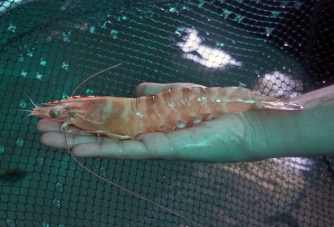 Denizden alınan jumbo karides, Çukurova Üniversitesi`nde (ÇÜ) teknik ve bilimsel çalışma sonunda havuzda üretildi.