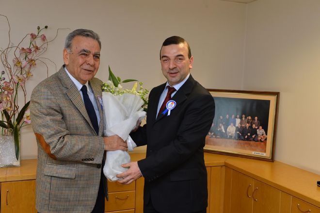 İzmir Vergi Dairesi Başkanı Rıfat Engin, bu yıl 26.’sı kutlanan Vergi Haftası nedeniyle İzmir Büyükşehir Belediye Başkanı Aziz Kocaoğlu’nu ziyaret etti. Engin ve Vergi Dairesi yöneticilerini İZSU Genel Müdürlüğü binasındaki çalışma odasında ağırlayan Başkan Kocaoğlu, geçmiş yıllarda çok iyi bir vergi mükellefi olduğunu, belediye başkanlığı görevi nedeniyle 2014 yılında 63. sıraya indiğini vurguladı. İki oğluna işleri devrettiğini ve vergi mükellefliğinden düştüğünü söyleyen Başkan Aziz Kocaoğlu, şimdi sadece gayrimenkul geliri nedeniyle vergi ödediğini vurguladı.