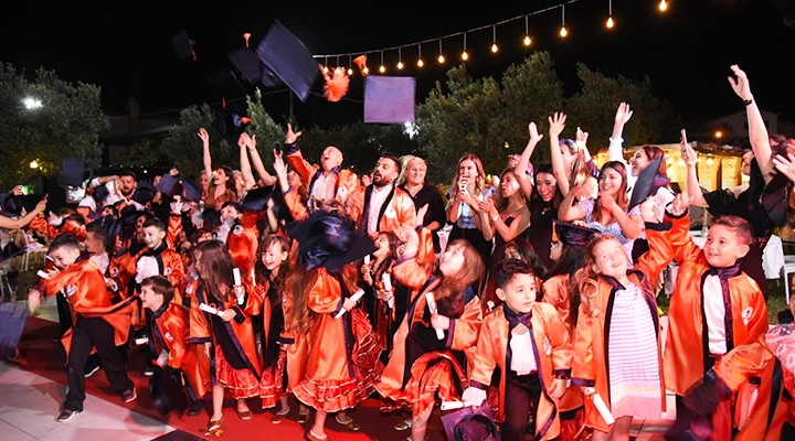 Çocukların dans gösterisi sunduğu programda, mezuniyet pastası hep birlikte kesildi. Mezuniyet töreni minik öğrencilerin keplerini havaya atması ile sona erdi.
