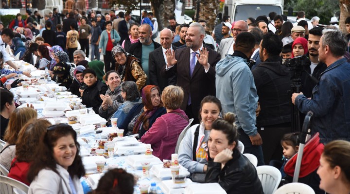 Dev iftar sofrasının bu yıl daha yoğun katılımla gerçekleştirmekten duyduğu memnuniyeti dile getiren Pehlivan, “Geçtiğimiz yıl Belediyemiz, hayırseverlerimizin de desteği ile Ramazan ayı boyunca her gün 7 bin vatandaşımıza iftarlık yemek dağıtımı gerçekleştirdi. Bu yıl yaptığımız bu gönül birliğini, depremzede vatandaşlarımızın ilçemize gelmesiyle daha da artırmaya karar verdik. Ramazan öncesi genişlettiğimiz Aşevi’nde her gün 10 bin kişilik iftarlık sıcak yemek hazırlanıyor. Hamdolsun ki, Ramazan ayı sonunda 300 bin vatandaşımıza iftarlık yemek vermiş olacağız. Ayrıca 25 bin ihtiyaç sahibi ailemize de erzak yardımında bulunuyoruz. Ben sizlerin vasıtasıyla, sundukları katkılarla daha fazla sayıda aileye ulaşmamızı sağlayan hayırseverlerimize ve bu faaliyetlerin başarıyla yürütülmesine önemli katkıları bulunan belediye emekçilerimize canı gönülden teşekkür ediyorum” dedi.