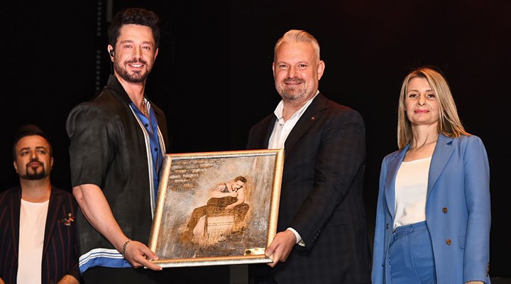 Konserin sonunda Başkan Vekili Aydın Pehlivan ve eşi Filiz Pehlivan, sanatçıya günün anısına hediye takdim etti.