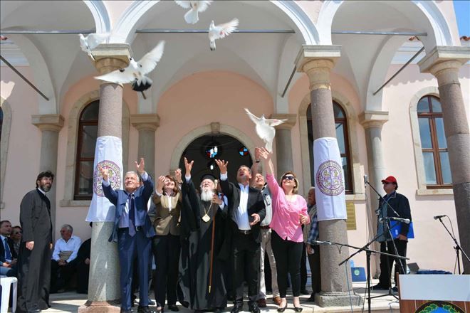 Geçtiğimiz yılgerçekleşen Rum Kilisesi´nin açılış töreninde beyaz güvercinler uçurulduğunu hatırlatan Başkan Şahin;?Patrik Hazretlerinin konuşmasından sonra geçen yıl barış güvercinleri uçurmuştuk, bu yıl da bunun geleneksel hale gelebilmesi için ve bundan sonrakiler de gelenekselleştirebilsin diye yine barış güvercinleri uçurmaya var mısınız?? sözleriyle katılımcılardan büyük alkış aldı. Daha sonra beyaz güvercinler gökyüzüne salınarak barış mesajları tüm dünyaya ulaştırıldı.