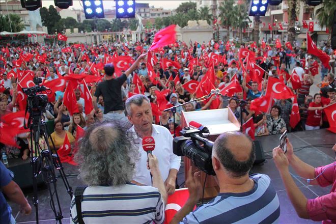 AKP İlçe Başkanı Mithat Çetin, ?Demokrasiye evet, darbeye hayır toplantımıza hoş geldiniz. Tarihe büyük harflerle yazılacak olan darbe girişimini protesto etmek için partili partisiz tek vücut olarak bir araya gelmiş bulunuyoruz. Bu durum milletin birlik ve kardeşliğini ortaya koymuştur. Alçaklara karşı milletim kendini siper etmiş, vatana millete sahip çıkmıştır. Bölünemeyeceğimizi göstermiş olduk. Bugün birlik olma günü, dayanışma günü? dedi.