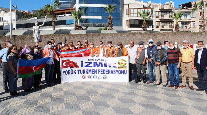 Saygı Duruşu ve İstiklal Marşı ile başlayan programda söz alan İzmir Yörük Türkmen Federasyonu Başkanı İsmet İlhan “Hepimizin bildiği gibi Ermenistan, 27 Eylül’den itibaren Azerbaycan’ın dağlık Karabağ bölgesini işgal ederek bir çok sivil halkın ölümüne ve yaralanmasına neden olmuştur. Tarihin birçok zamanında yapmış oldukları zulüm, yağma ve katliamlarına Azerbaycan Türkleri üzerinde de devam etmektedirler. Bu saldırıyı yapan Ermenistan’ı şiddetle kınıyoruz. Bu cesaret ve güçlerini nereden aldıkları herkesçe malumdur. İnsan hakları ve demokrasiden bahseden dünyanın sayılı devletleri bu zulüm ve işgal karşısında seyirci kalmaktadırlar. Ermenistan ve onun destekçileri şunu çok iyi bilmelidirler ki; Azerbaycan Türkleri bizim kan kardeşlerimizdir. Kardeşlerimizin derdi derdimiz sevinçleri sevincimizdir. Onun içindir ki her Türk, Yörük, Türkmen ve yek vücut Türkiye’m kardeşlerimizin yanında olmaya devam edecektir. Gerekirse kuşanarak cepheye çıkacağız. Sonuç olarak Ermenistan ve onun destekçileri ellerini derhal dağlık Karabağ’dan çekmelidirler. Bu konuda Birleşmiş Milletler, NATO ve Avrupa Birliği ülkeleri hemen harekete geçerek bu haksız işkenceyi önlemelidirler. Devlerimiz ismi ayrıda olsa bizler iki Devlet Tek milletiz. Ne Mutlu Türküm diyorum.” dedi.