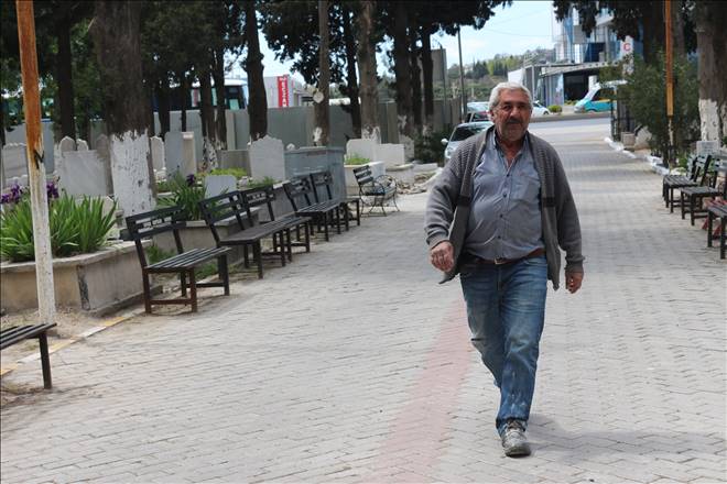 Çanakkale-İzmir karayolu üzerindeki İzmir Büyükşehir Belediyesi bünyesine alınan Menemen mezarlığını ziyaret ettiğimizde kabristan ziyaretçilerine Hasan Tekin yol gösteriyordu.