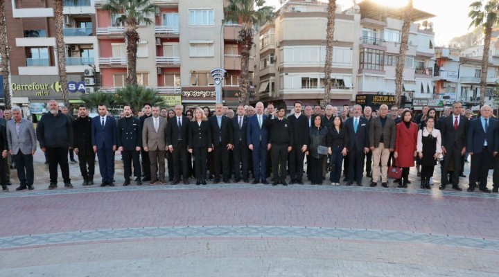 Çelenk sunma törenine, Belediye Başkanı Aydın Pehlivan, İlçe Milli Eğitim Müdürü Sibel Ağaoğlu Özer, meslek odalarının başkan ve yöneticileri, siyasi parti temsilcileri, okul müdürleri, öğretmenler ve öğrenciler katıldı. Tören başlamadan önce tören alanındaki protokol burada bulunan öğretmenleri tebrik ederek günlerini kutladı. İlçe Milli Eğitim Müdürü Sibel Ağaoğlu Özer Atatürk Anıtı´na çelenk bıraktı. Ardından kutlamaların yapılacağı Kültür Merkezine geçildi.