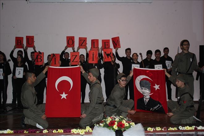 Konuşmasını, Atatürk´ün askeri kişiliğini anlatmak üzere kürsüye gelen 57. Topçu Tugay Komutan Yardımcılığı görevlisi Topçu Teğmen Ersel Akoğlan, Türkiye Cumhuriyetini kuran, Büyük Önder, Ebedi Başkomutan, Saygın devlet adamı Mustafa Kemal Atatürk´ün askeri kişiliğini arz etmesinin ardından konuşmasını şöyle sürdürdü; ?Onun doğru, isabetli ve hassas planlamaları, büyük imkansızlıklarla yapılan Kurtuluş Savaşı´nın kazanılmasını sağlamıştır. Mustafa Kemal, öngörülü ve planlamacı yeteneği sayesinde aynı zamanda dünyanın sayılı stratejistlerinden biriydi. Cephelerde; en ümitsiz anlarda, mutlaka bir aydınlık yol bulup, kesin karar ve cüretli icraatlarla; ümitsizliği ümide, çaresizliği çareye, mağlubiyeti zafere çevirmesini bilmiştir. Mustafa Kemal 22 gün 22 gece süren Sakarya Meydan Muharebesi boyunca, bir ara sakatlanmasına rağmen, orduyu yönetmiş, sayı, mühimmat ve askeri olanaklar açısından çok eksik olan Türk ordusu, batının bütün imkanlarını arkasına almış olan yunan ordusunu hezimete uğratmıştır. Çanakkale Muharebelerinde, dünyanın en büyük ve gelişmiş donanmasını ve ordusunu durdurarak, Çanakkale´nin geçilemeyeceğini Mustafa Kemal, adını tüm dünyaya duyurmuştur. ?Ya İstiklal, Ya Ölüm? parolasıyla, artık; Anadolu´ya geçerek Milli Mücadele bayrağını açmanın zamanı geldiğini anlayan Mustafa Kemal; o sıralarda kendisine teklif edilmiş olan 9´uncu Kol Ordu Müfettişliği görevini hiç düşünmeden kabul etmiştir. Mensubu olduğu Türk Milletini sonsuz bir aşkla seven Mustafa Kemal Atatürk, Milleti için her türlü zorluğa katlanmış ve kendini ona adamıştır. Bize bu güzel coğrafyayı vatan yapan, yüksek vatan ve insan sevgisi, doğa ve çevre aşığı, mümtaz insan, büyük komutan, eşsiz devlet adamı Atatürk ve aziz şehitlerimizi şükranla anıyoruz. Vatan sana minnettardır? dedi.