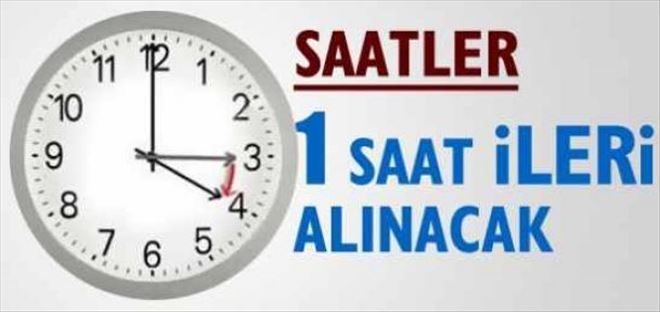 Gün ışığından daha fazla yararlanmak amacıyla saatlerin yeniden ayarlanmasına ilişkin Bakanlar Kurulu kararının Resmi Gazete´de yayınlanması üzerine saatler 27 Mart Pazar günü saat 03.00´ten itibaren bir saat ileri alınacak.
