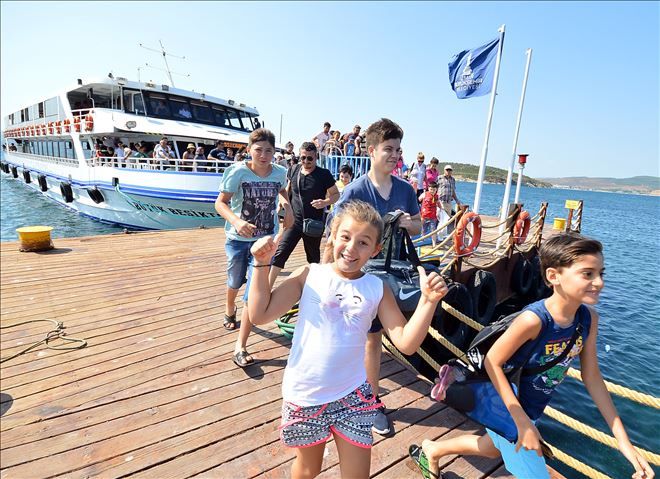 Yaklaşık bir buçuk saat süren keyifli bir deniz yolcuğunun ardından soluğu Ege´nin serin sularında alan tatilciler, adada akşam saatine kadar keyifli bir gün geçiriyor. Çocuklar denizden hiç çıkmazken, deniz kaydırağına da ilgi büyük oluyor. Konukların bir kısmı adanın 400 metrelik kumsalında güneşlenirken, gölge isteyenler ise şemsiyeleri, ağaç altlarını ya da kafeteryayı tercih ediyor. Vatandaşlar yiyeceklerini kendileri getirebildikleri gibi, Grand Plaza tarafından işletilen kafeteryadan da sağlıklı ürünler alabiliyor.