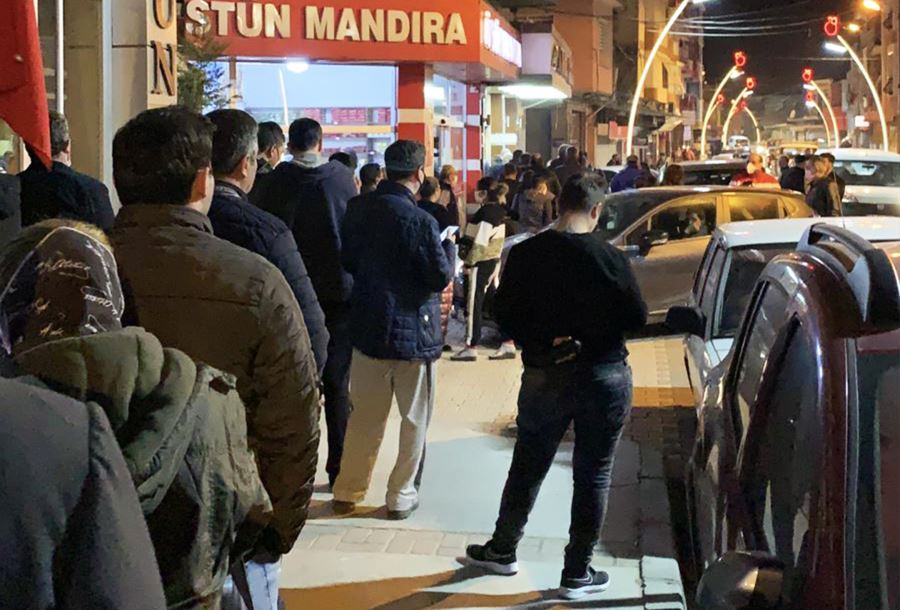 Yasak haberinin açıklanmasının ardından Menemen’de vatandaş sokağa döküldü. Koşarak sıraya girdi.
