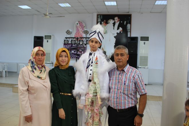 Menemen’de öğrenci servisi taşımacılığı yapan Enver-Arife Temel çifti, Menemen Belediye Düğün Salonu’nda oğulları için düzenlediği sünnet düğününde konukları ve yakınlarını ağırladı. Sünnet çocuğu arkadaşları-akrabaları ile davul-zurna eşliğinde gün boyunca eğlendi.