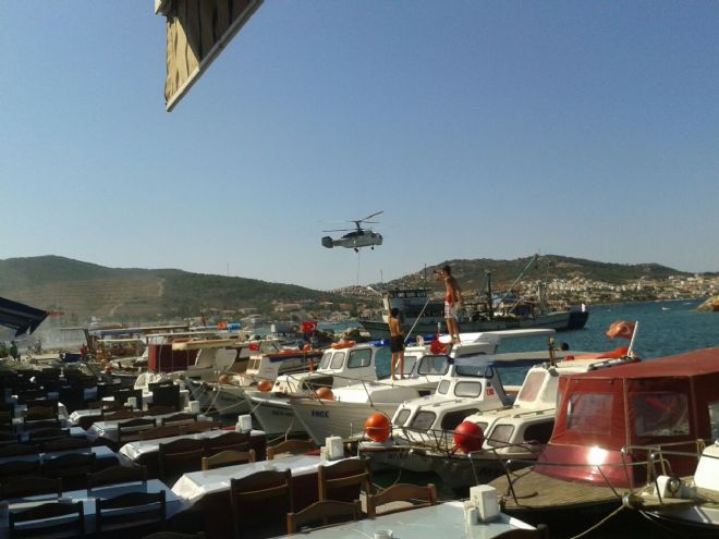 Geçtiğimiz Cuma günü İzmir`in Foça ilçesinde makilik alanda çıkan yangını kontrol altına almak amacıyla bölgeye sevk edilen ekiplerin içerisinde bulunan 4 yangın söndürme helikopteri, Yeni Foça sahiline yakın kesimlerden su alınca çevrede bulunan kafe ve teknelerde maddi hasar meydana geldi.